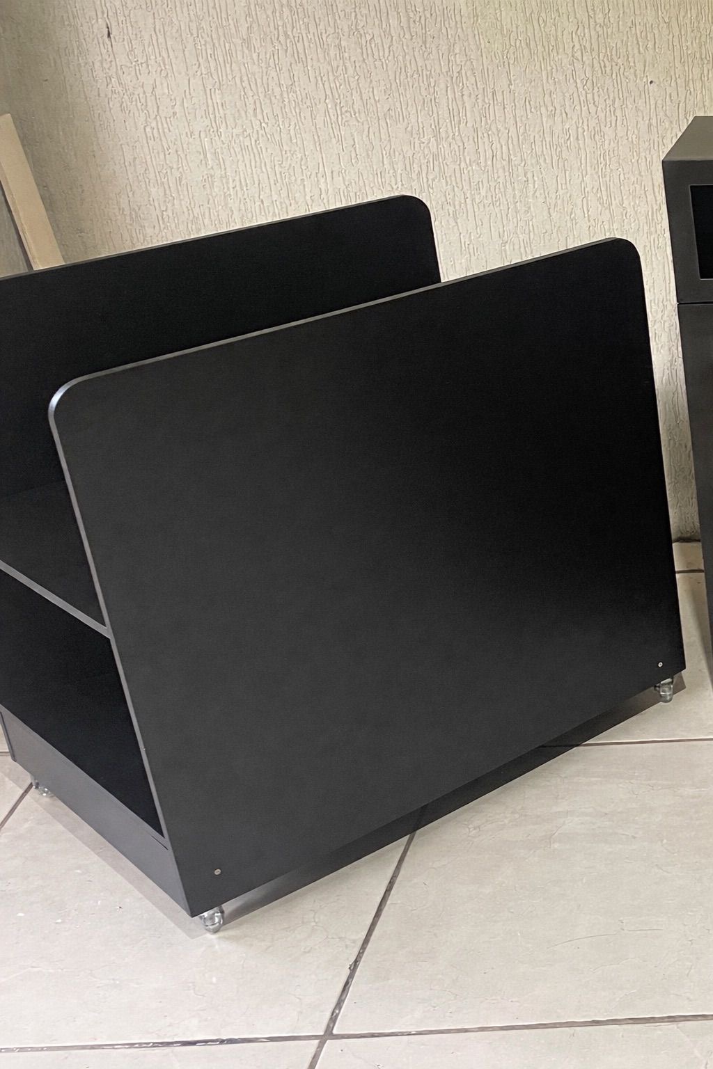 Carrinho suporte em MDF preto 15mm - logo grátis